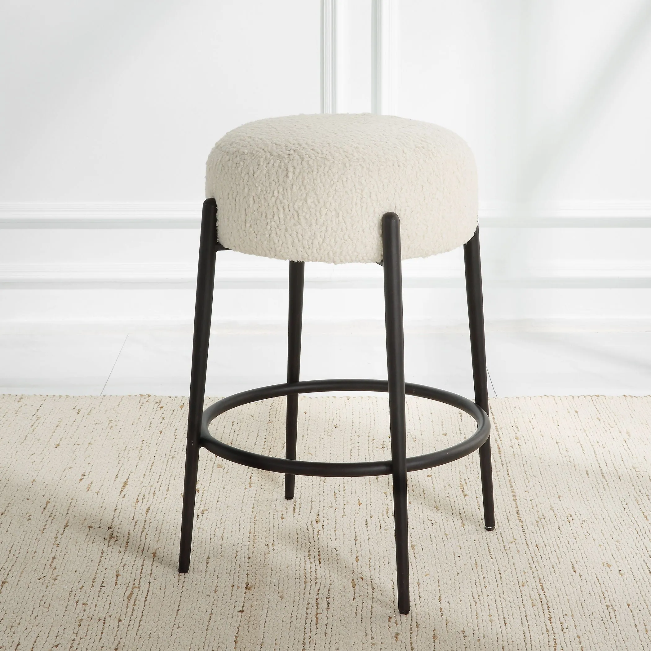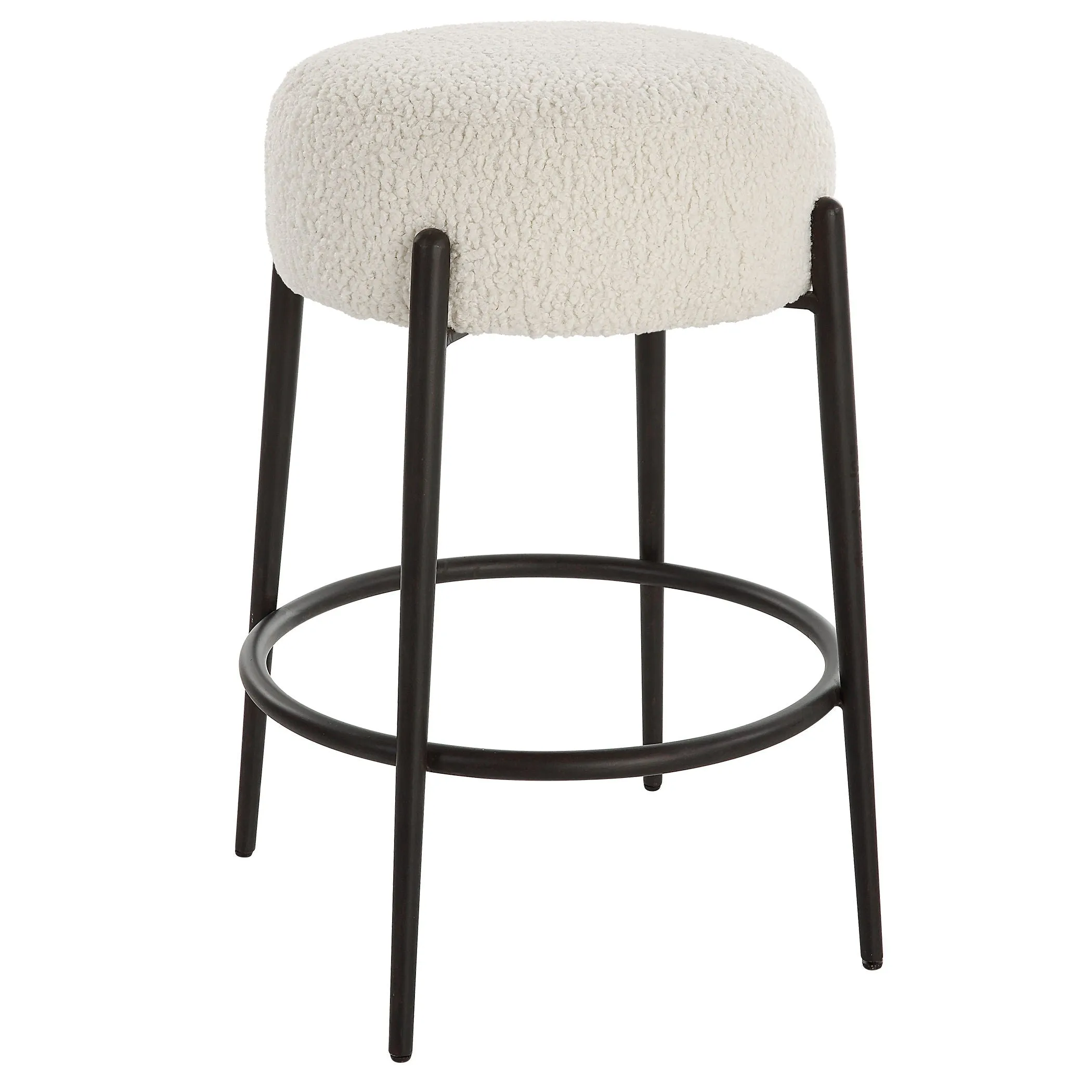 - This Plush Counter Stool Is Covered In A Luxurious White Faux Shearling, Suspended Within Satin Black Finished Metal Legs.