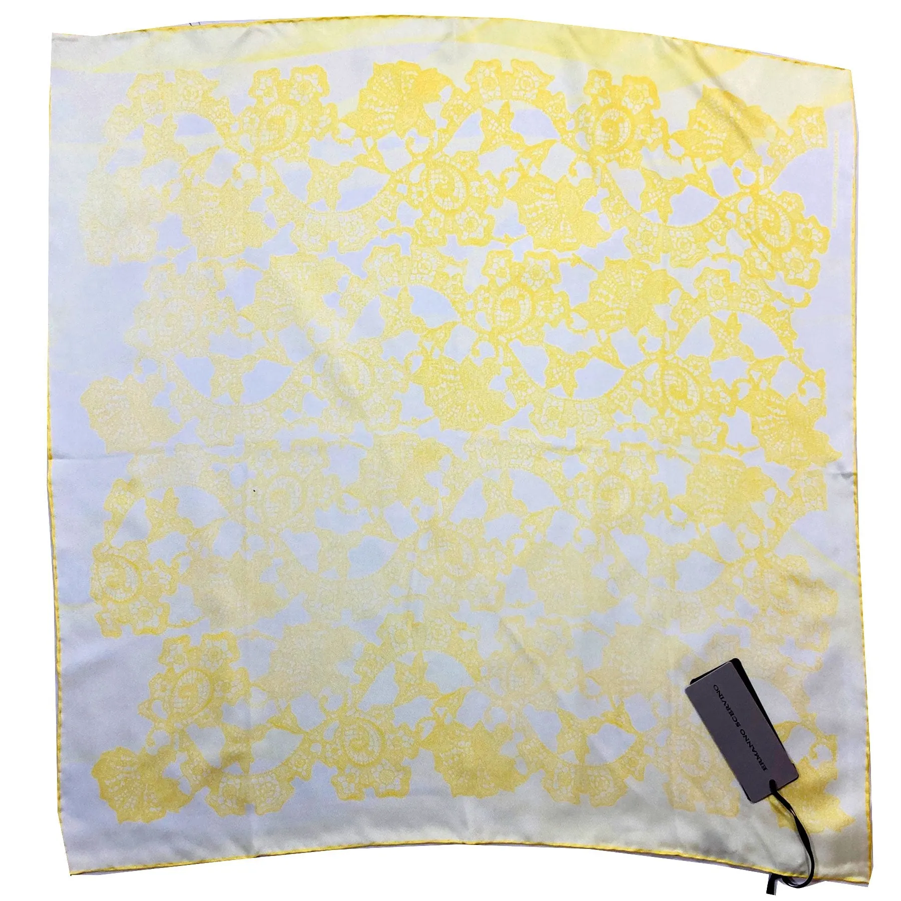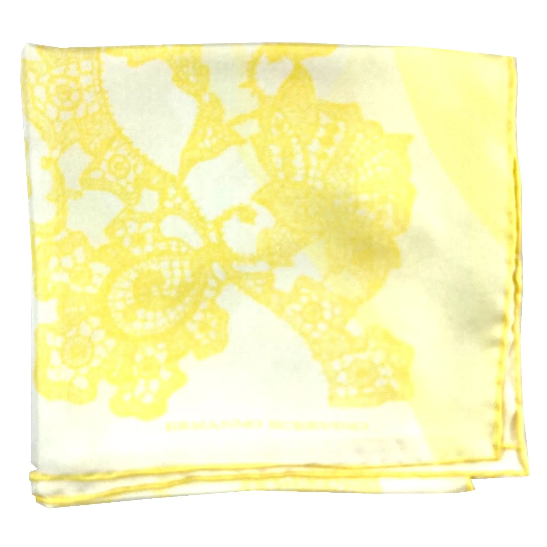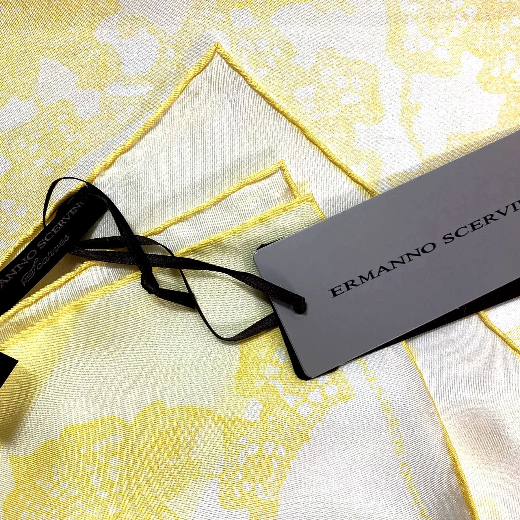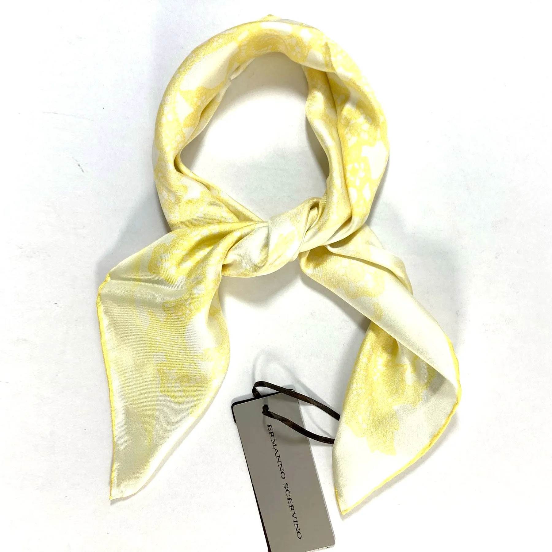 SALE - Authentic Ermanno Scervino scarf, White / Yellow Ornamental design, twill silk, made in Italy. Genuine Ermanno Scervino silk scarves, shop at outlet prices.